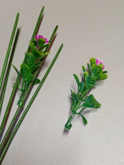 Добавка зелени с цветком / 5 шт / 5 см / бело - малиновый
