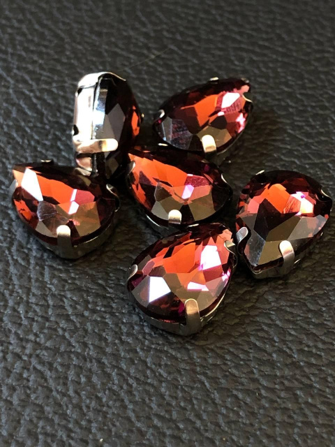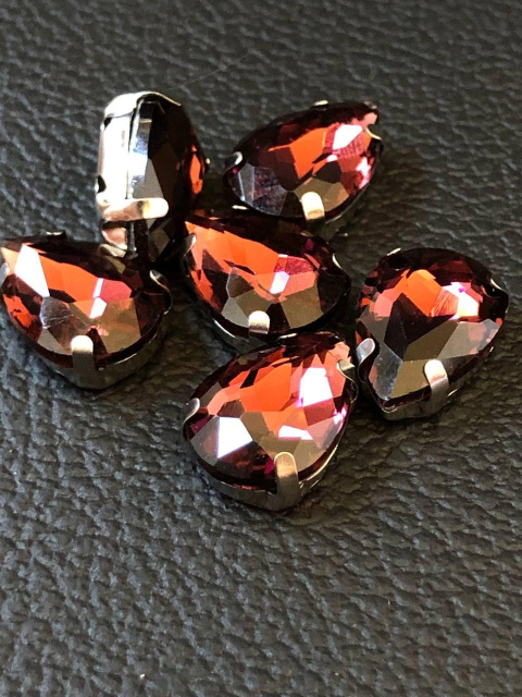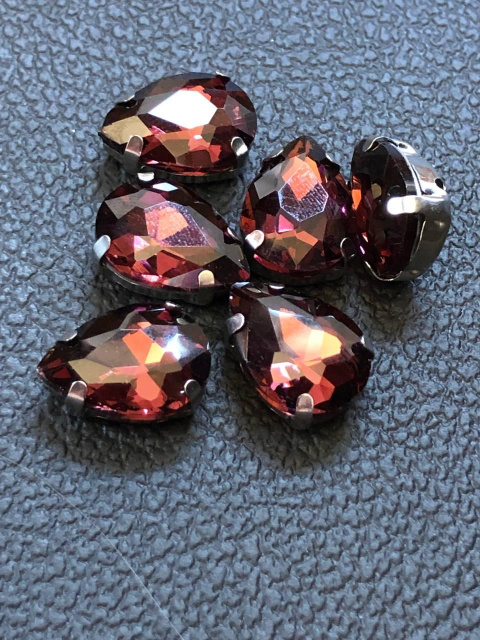 Страз (стекло) в металлической оправе. Размер - 10×14 мм. Цвет- баклажановый