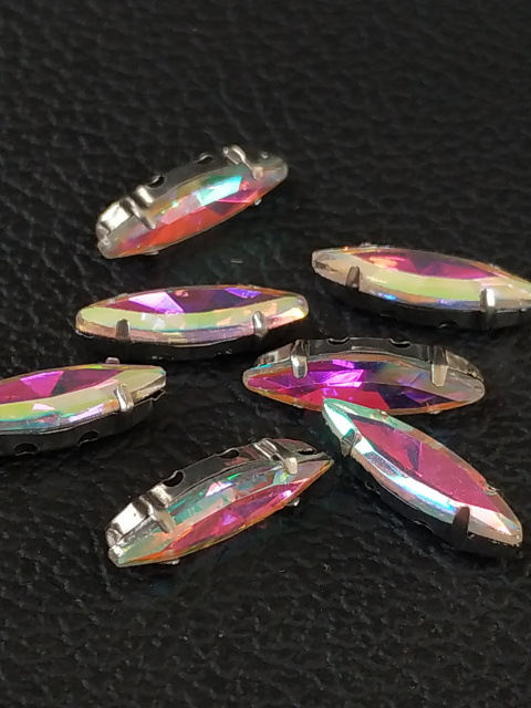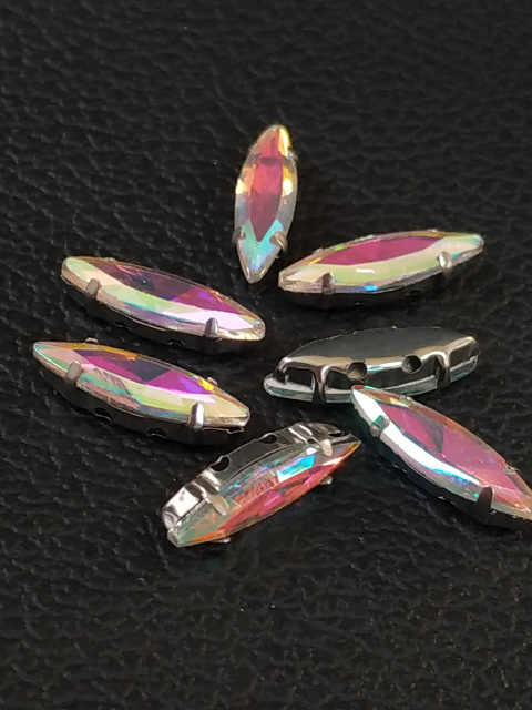 Страз (стекло) в металлической оправе. Размер - 4×15 мм. Цвет- прозрачный с АБ 5 шт