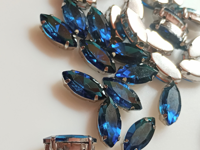 Страз (стекло) в металлической оправе. Размер - 7×15 мм. Цвет- аквамарин