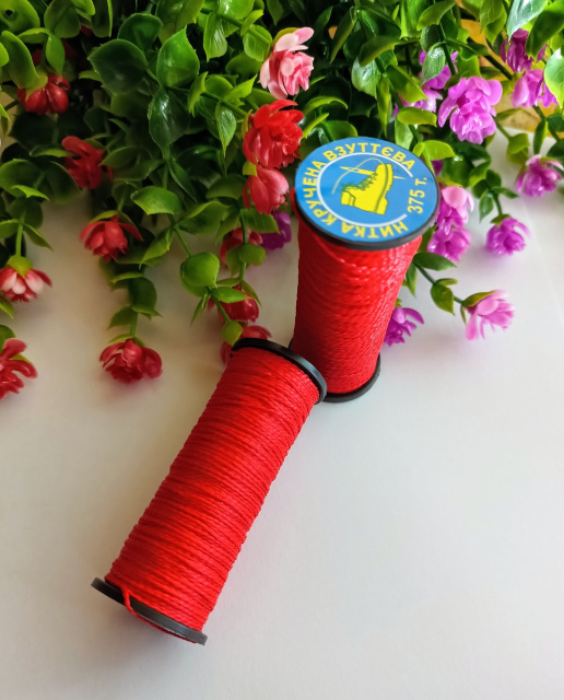 (1 шт) Нить капроновая обувная 375 т. Цвет красный. Катушка 20 м
