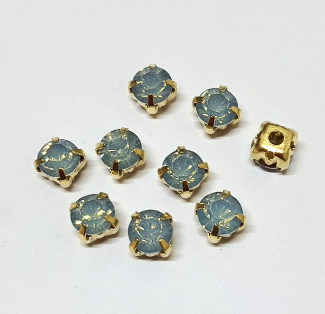 Страз (акрил) в золотой металлической оправе. Размер - 6 мм. Цвет- голубой опал