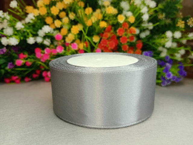 Атласная лента 4 см. Длина рулона 23 м. Цвет светло серый